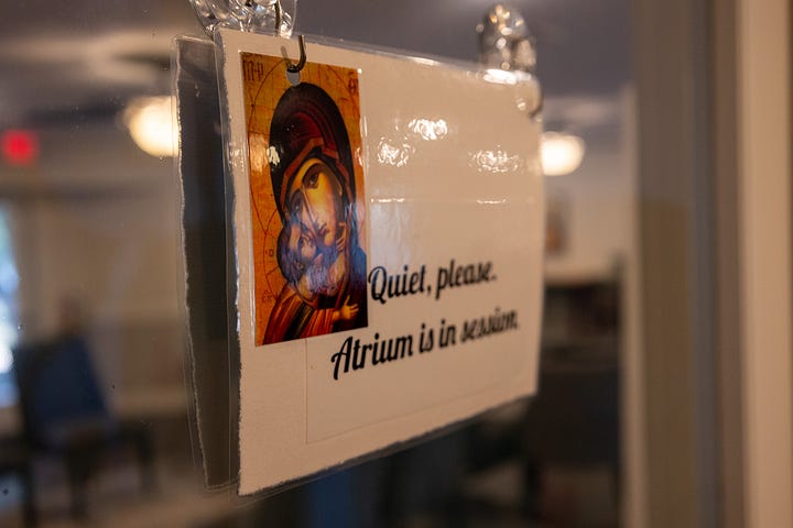 You can easily see the Montessori influence in the ways that the atria are arranged, but, with the gorgeous iconography by our very own Baker Galloway, you can also easily see how we are adapting CGS to Holy Orthodoxy.