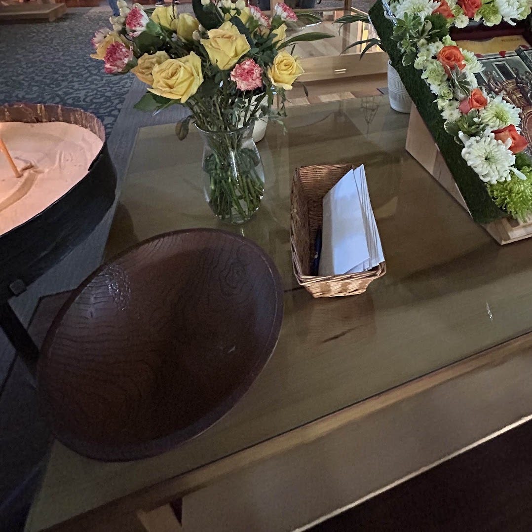 That was our offering. The girls put theirs in their purses; the guys shoved theirs into their pockets.