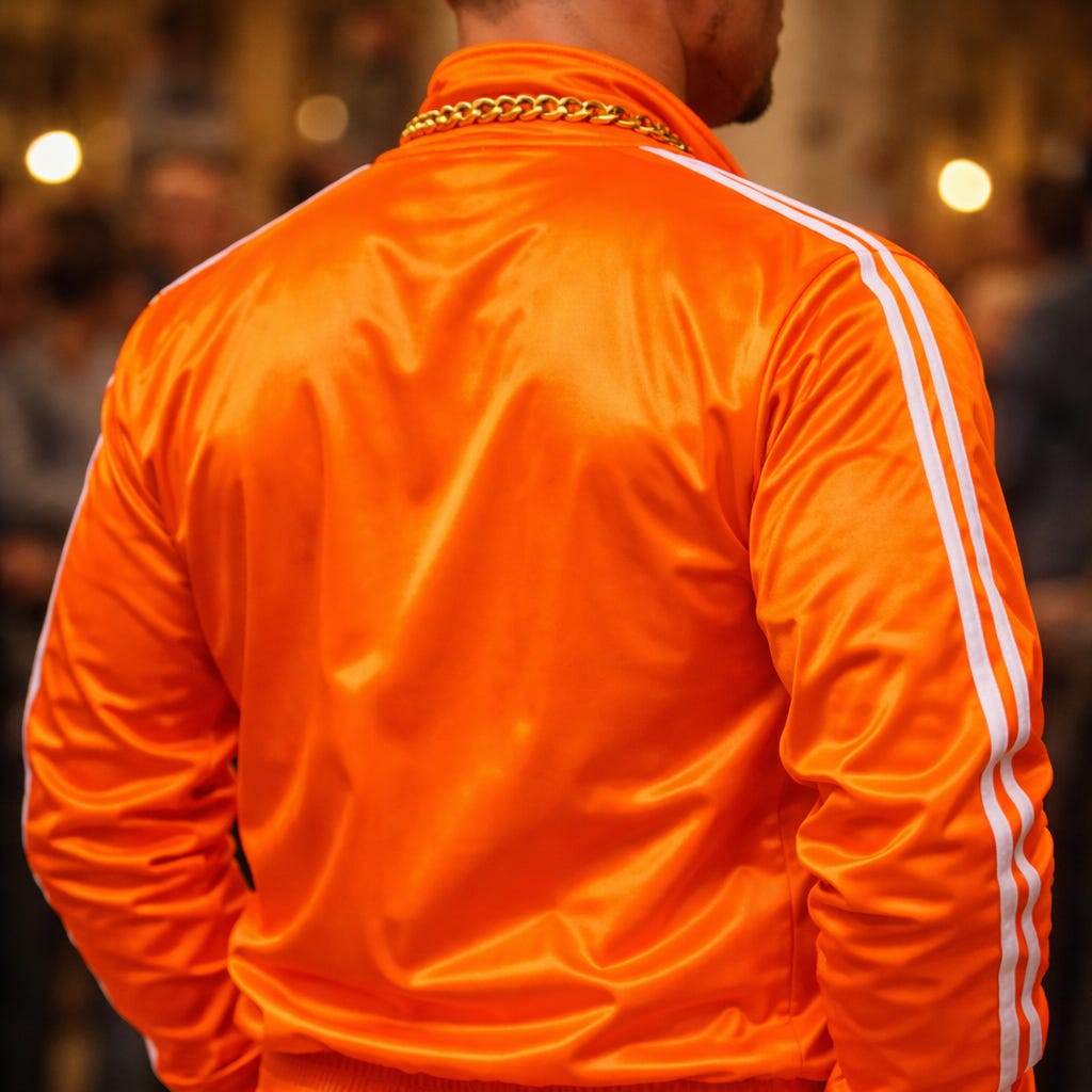 But this isn’t just your run-of-the-mill, off-the-rack athleisure wear. No, Pascha Track Suit Guy always rocks a brand new, never before been worn, still kind of starchy and stiff, right out of the wrapper, custom zip-up jacket and sweat pants ensemble—and, yes, you can claim bonus points if the track suit still has the tags on it.